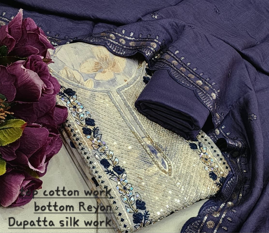 Paired with a soft rayon bottom for all-day comfort and a graceful chiffon dupatta with delicate work,