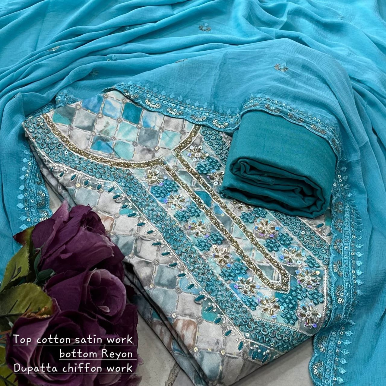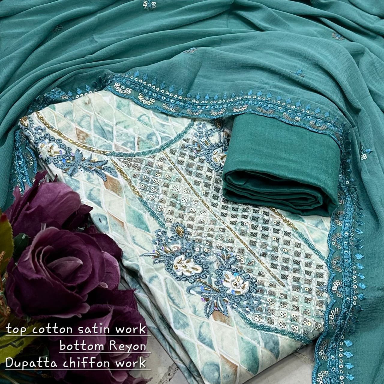 Beautiful Cotton Satin Embroidered Suit Set designed for elegance and comfort.