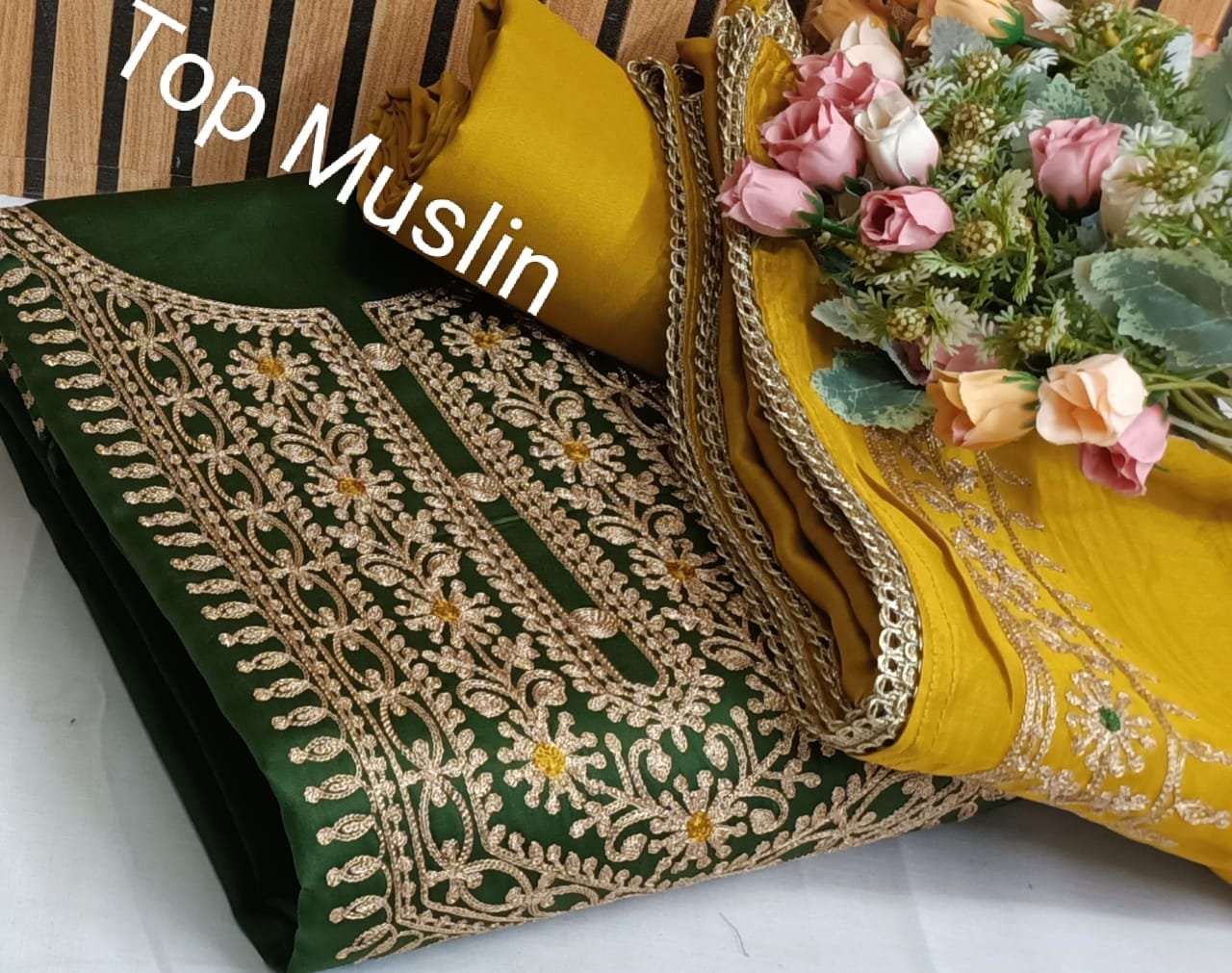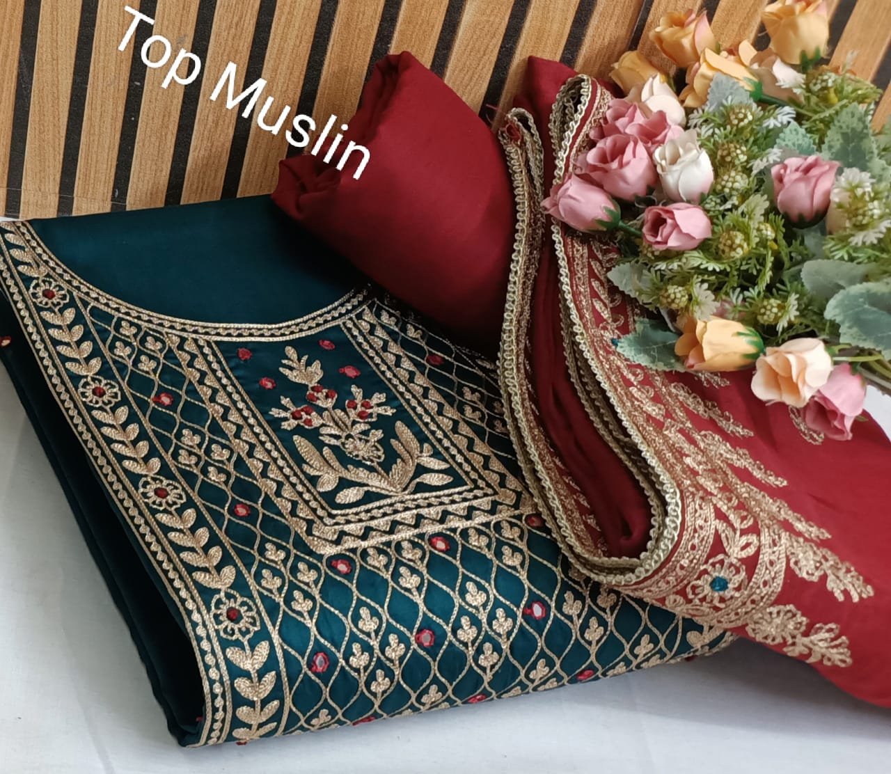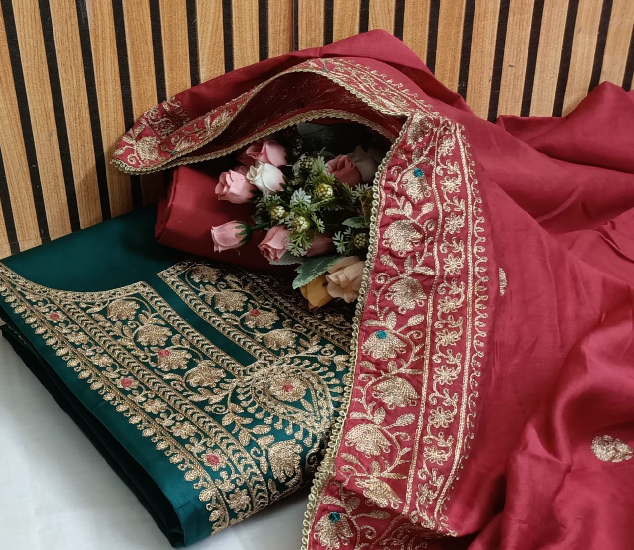 The beautifully crafted embroidered top is paired with a comfortable bottom and a stunning heavy embroidered dupatta, making it perfect for festive occasions, weddings, parties, and special gatherings.
