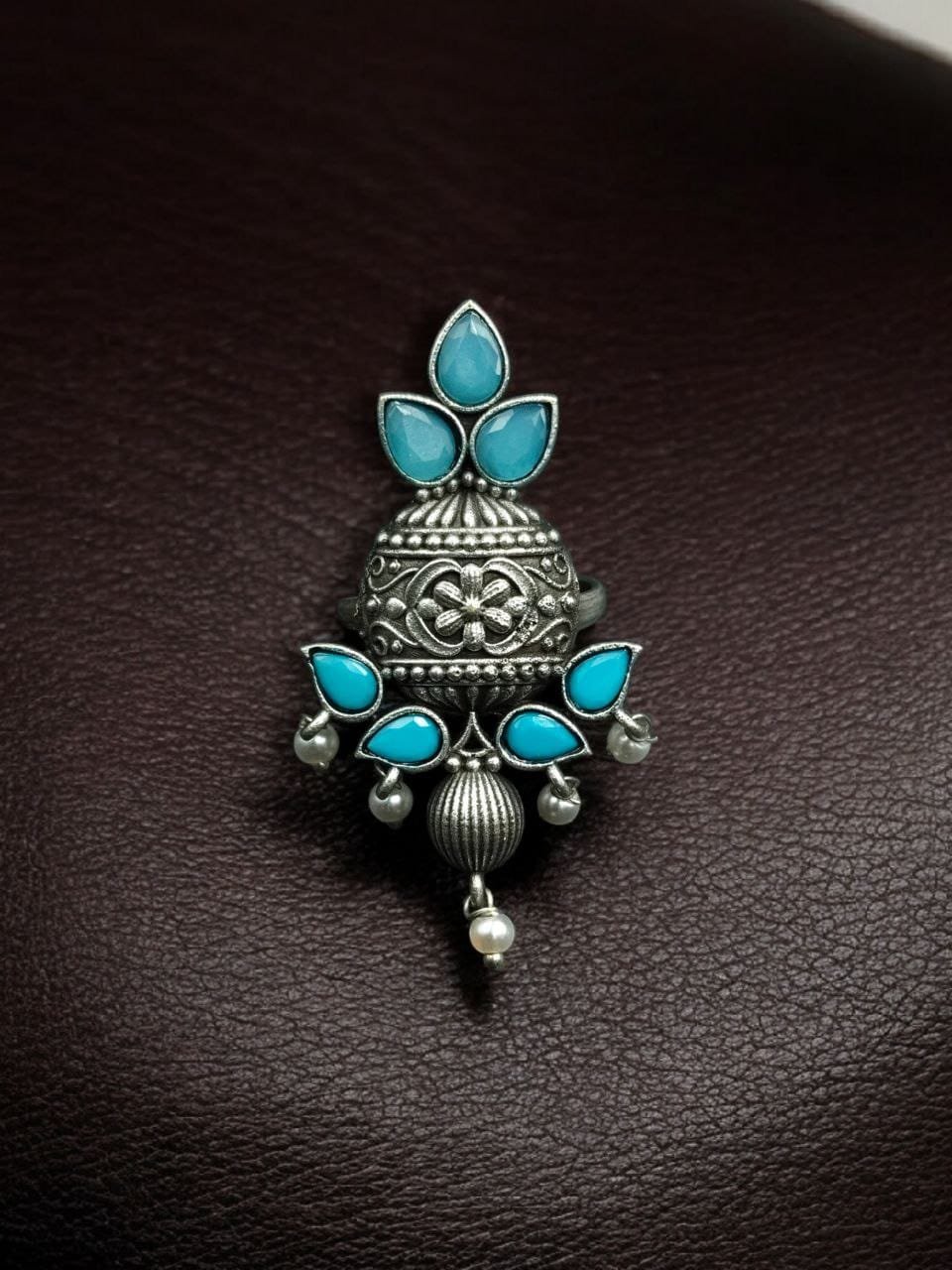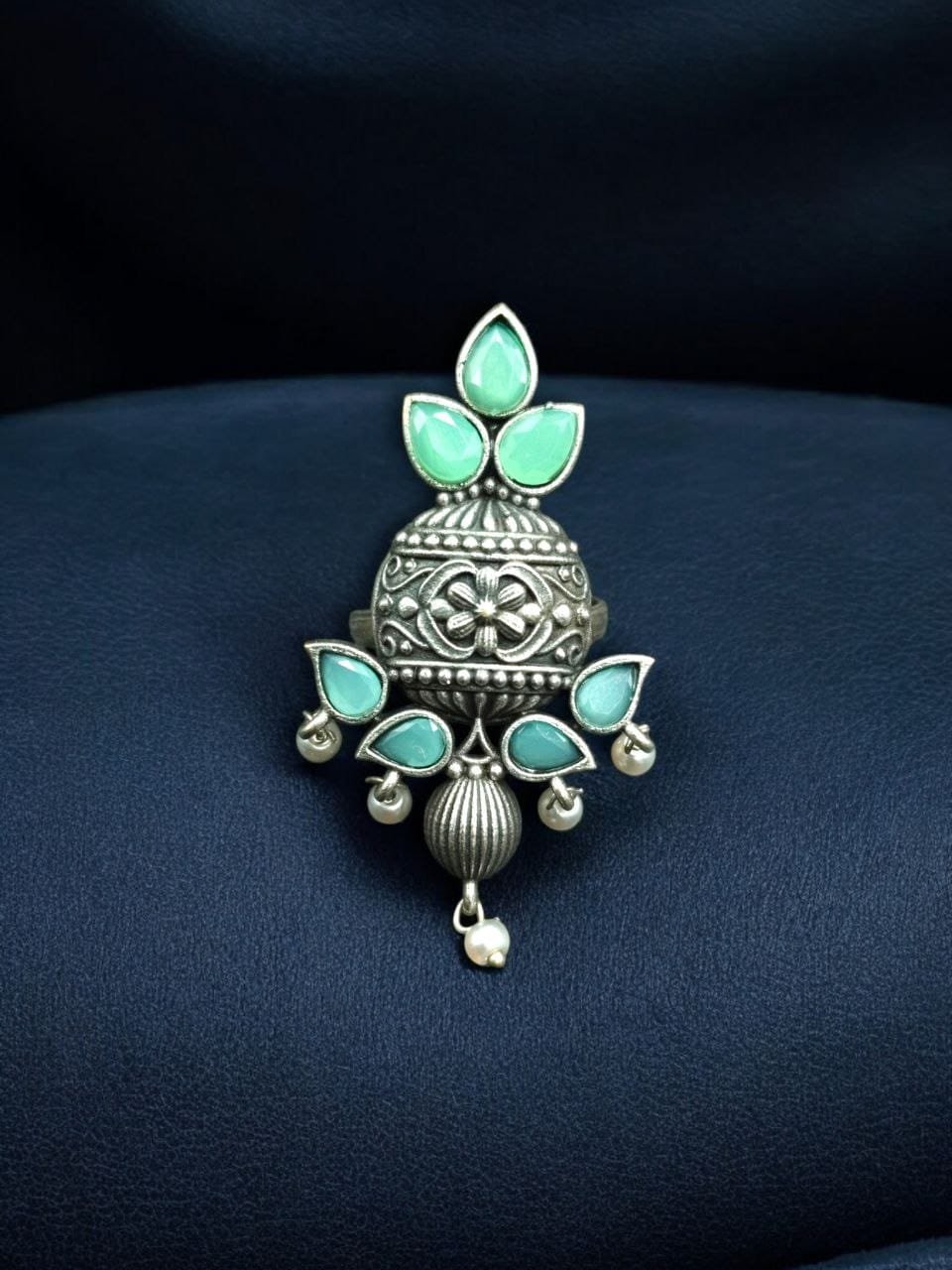 Elegant Silver Replica Adjustable Ring | Stone & Pearl Work Unique Design Jewelry