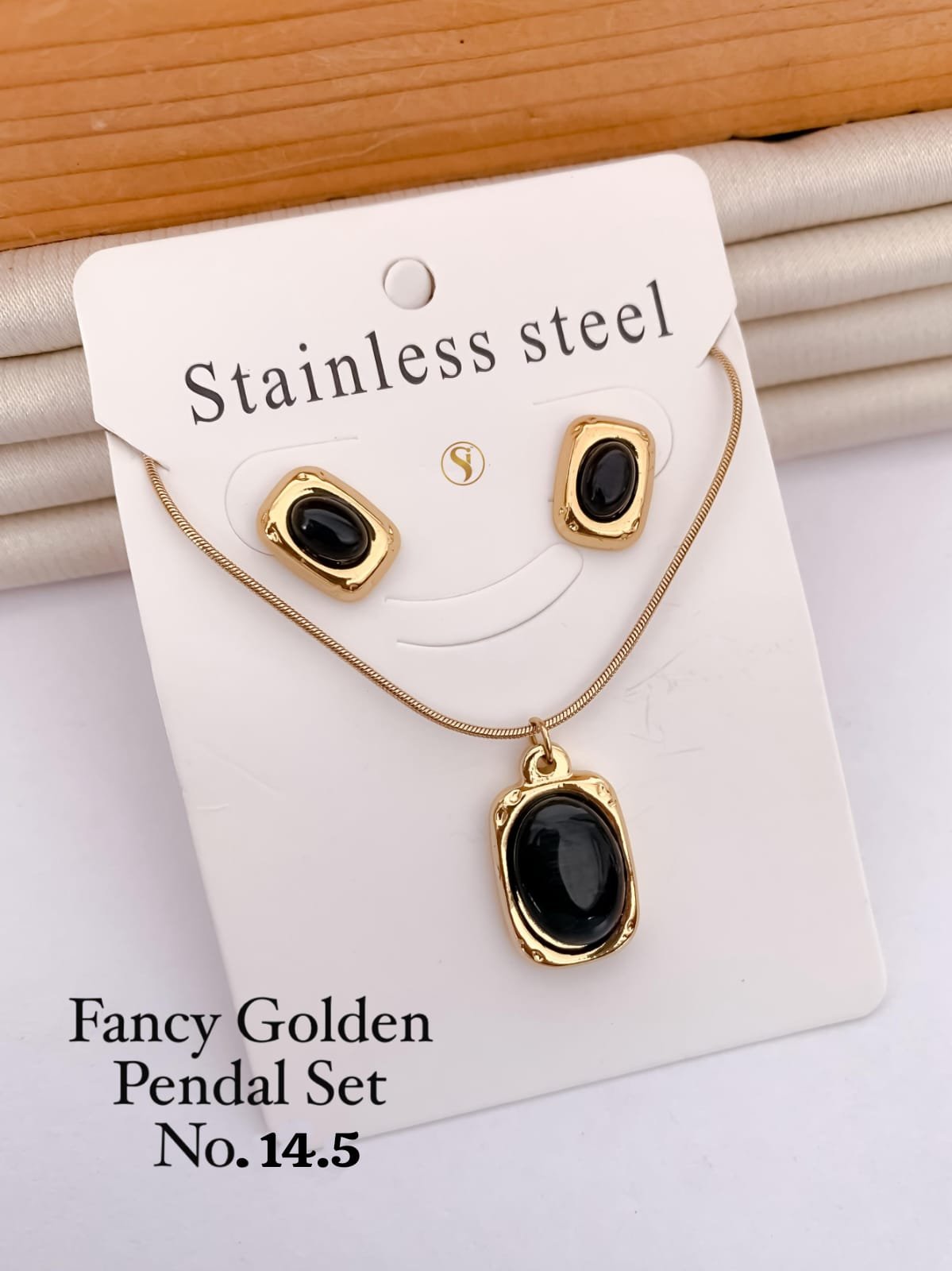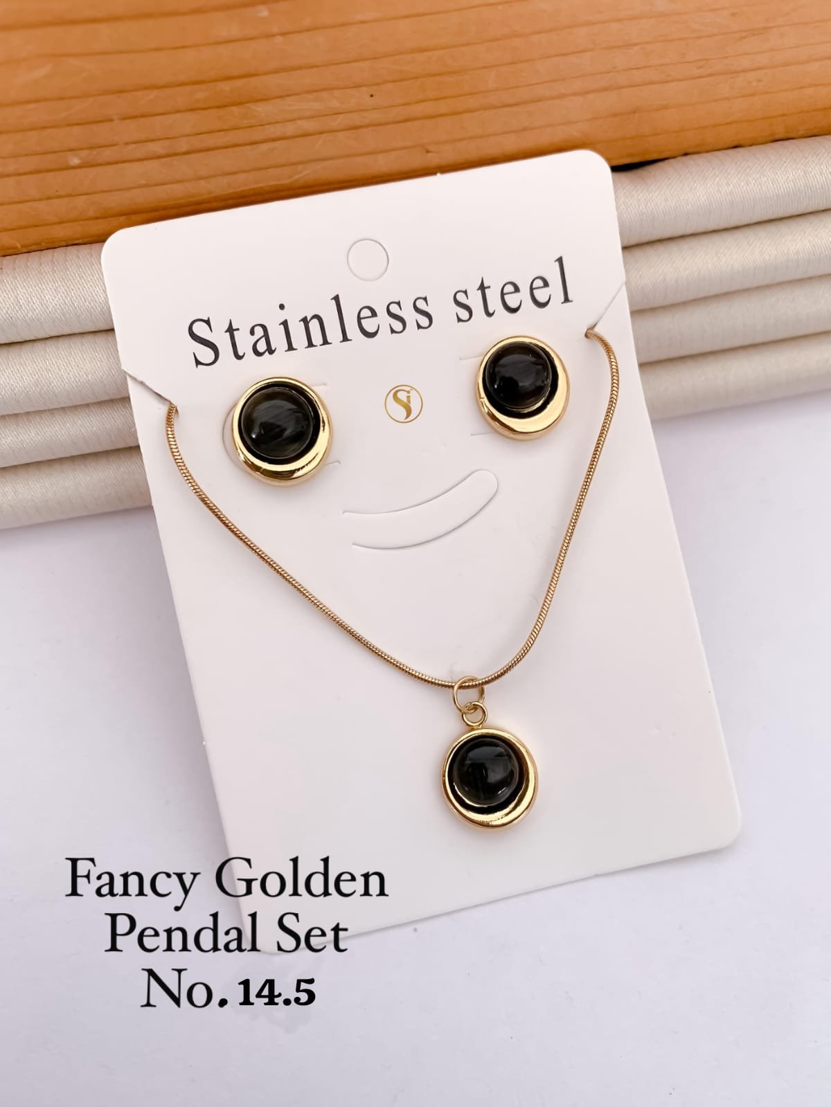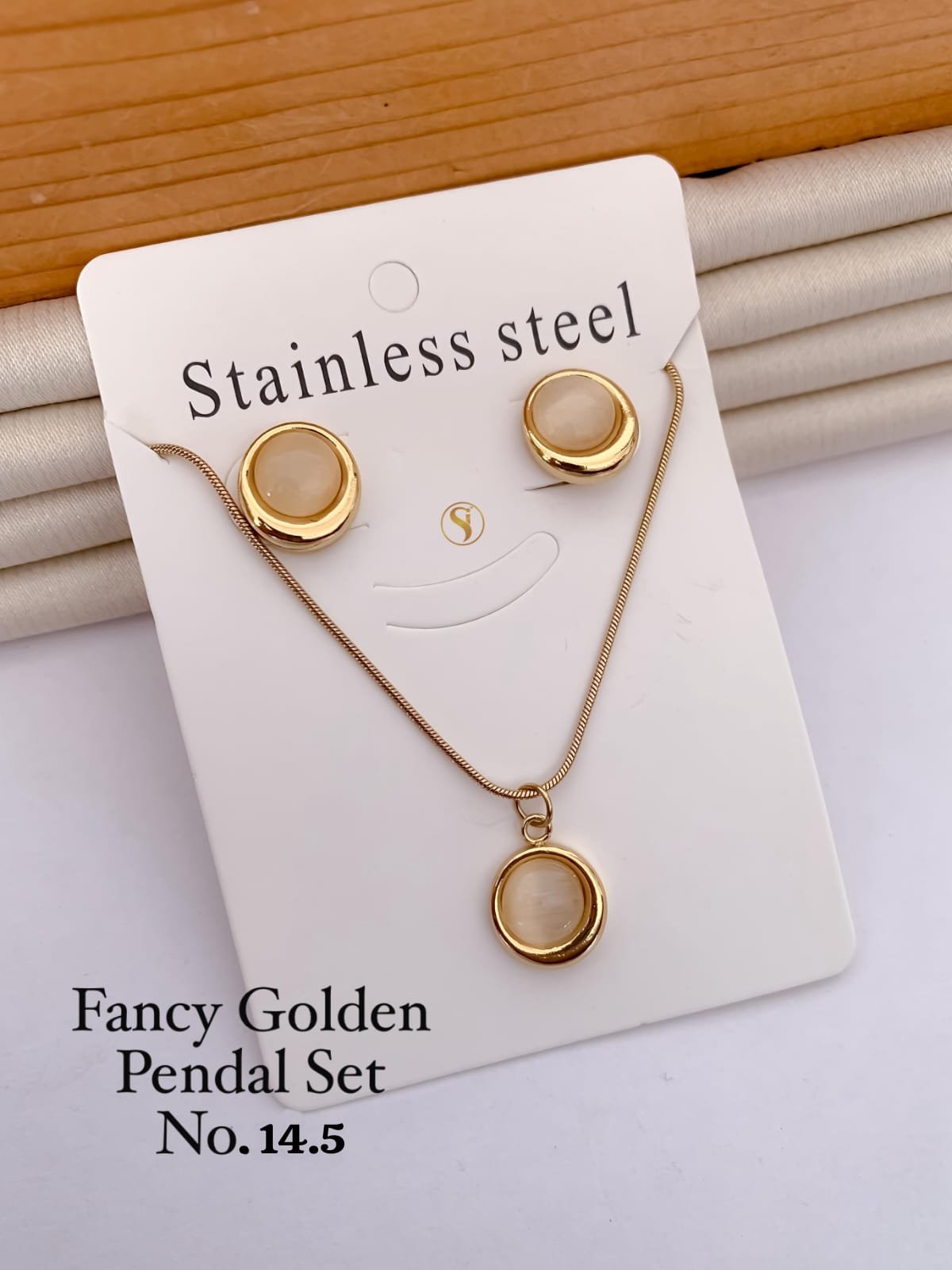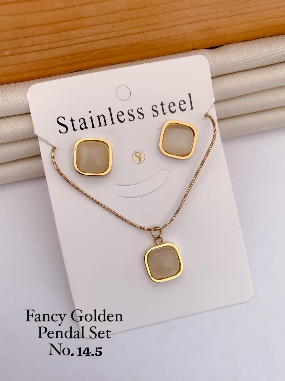✨ Upgrade your look with this classy gold-finish stainless steel pendant set, designed for daily elegance and long-lasting shine.