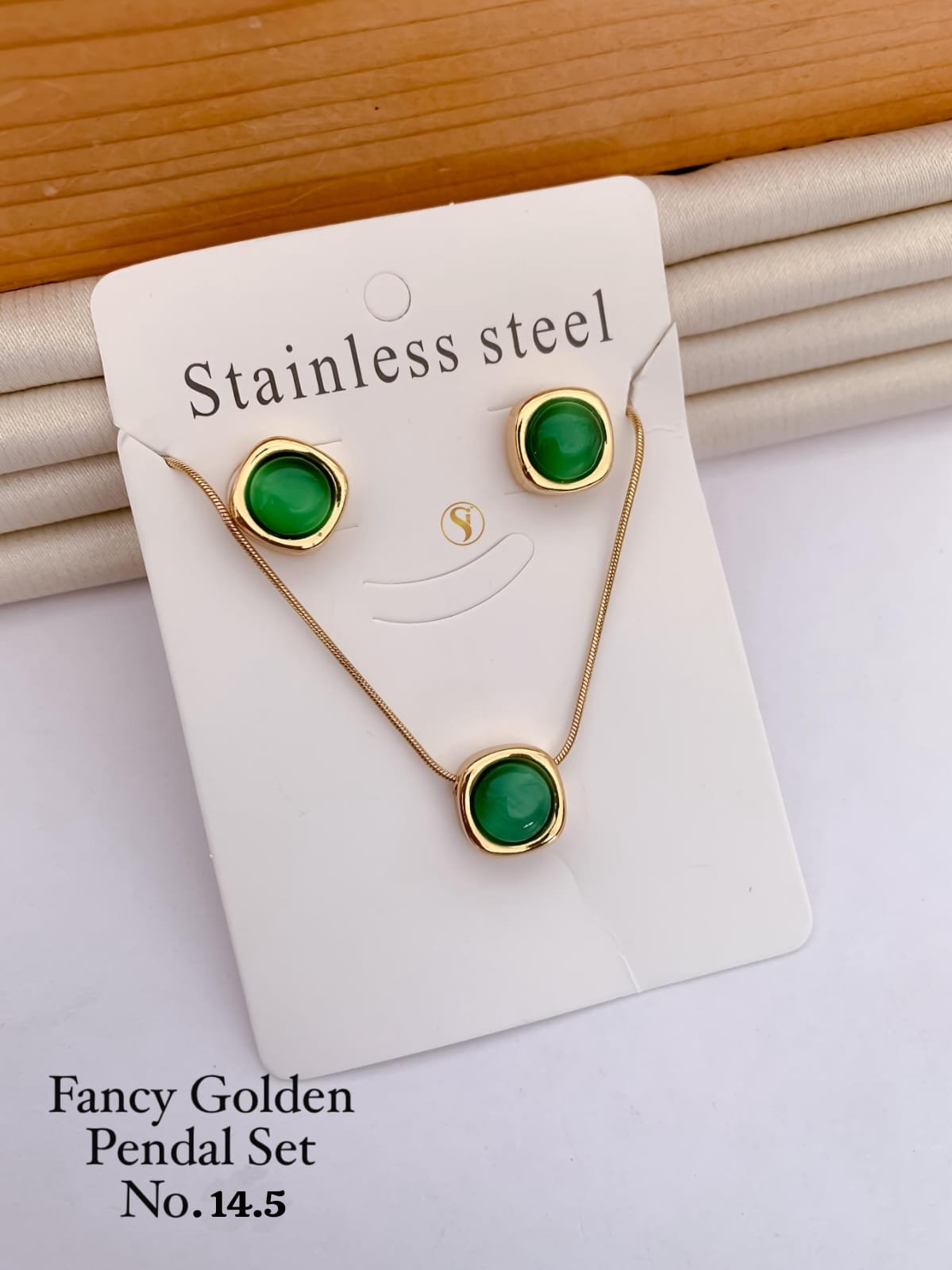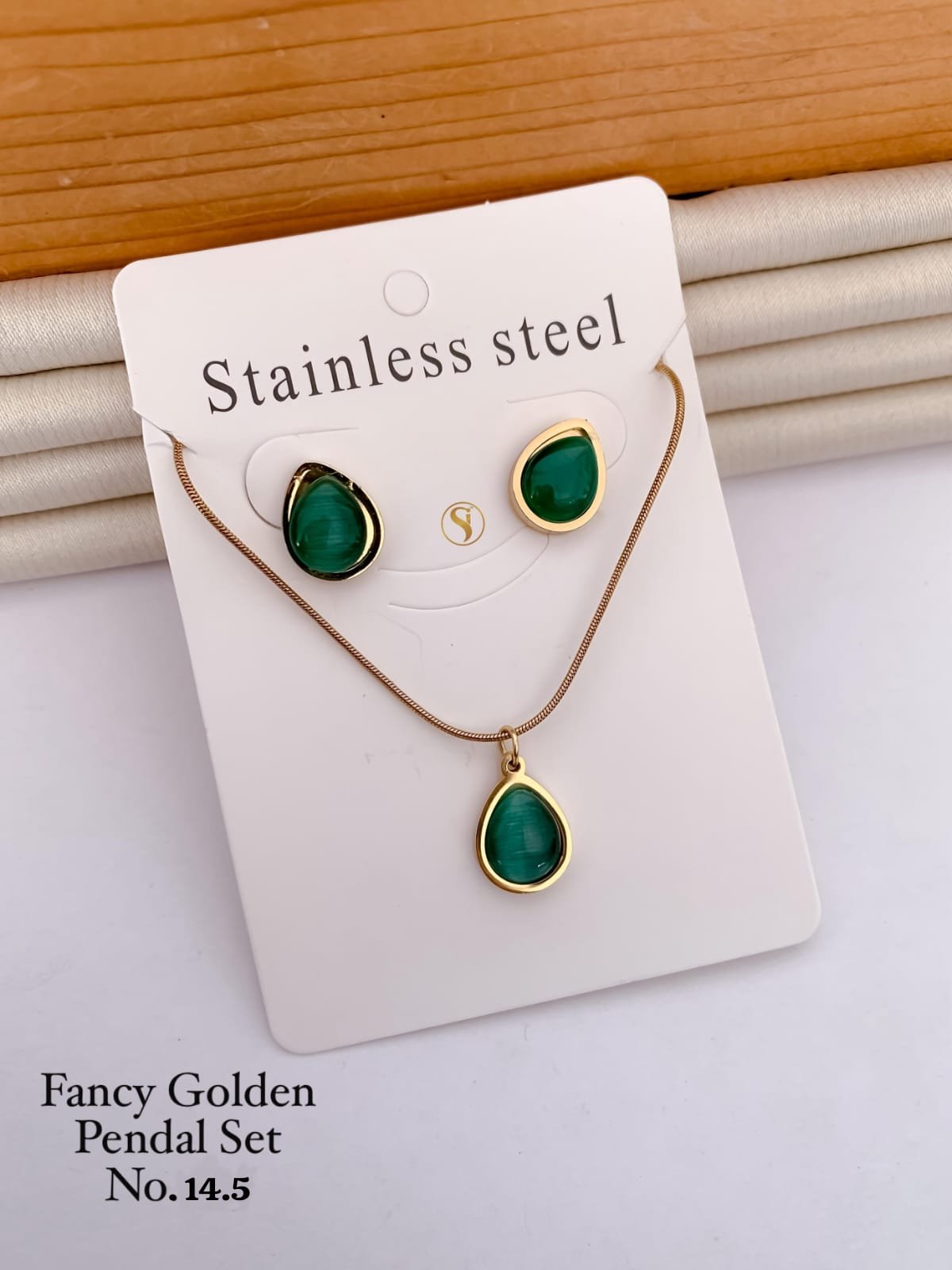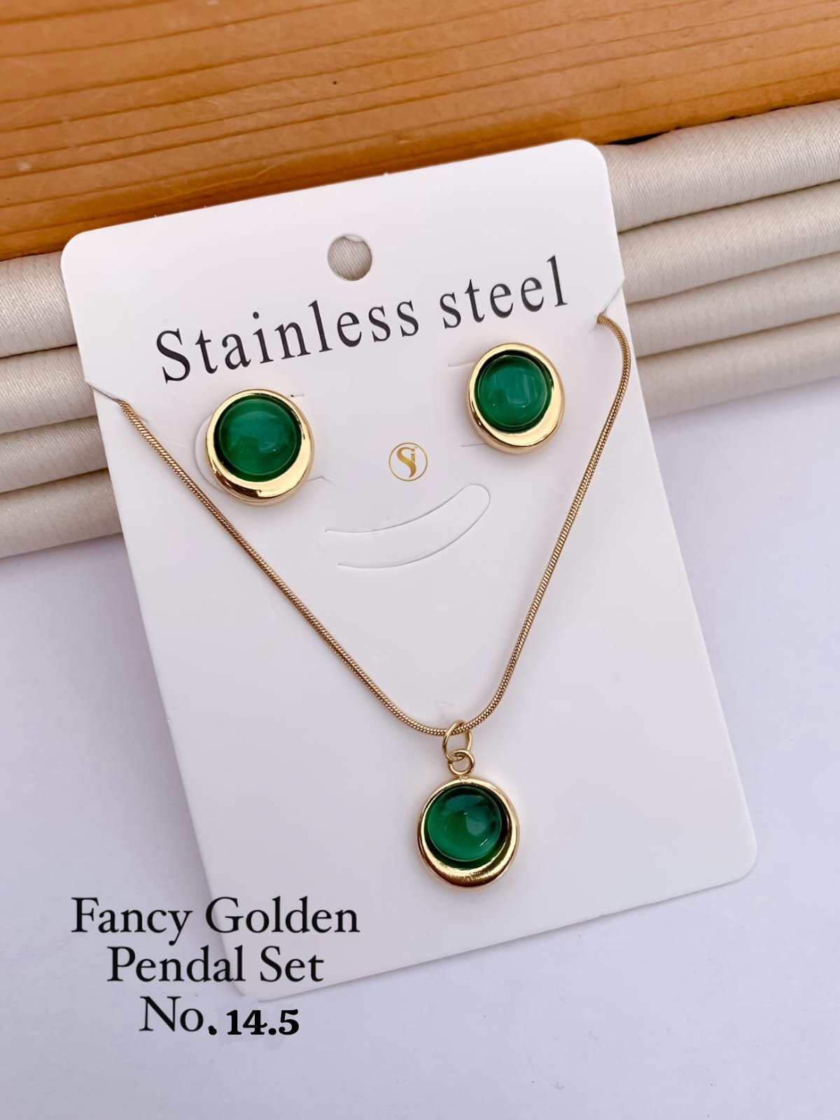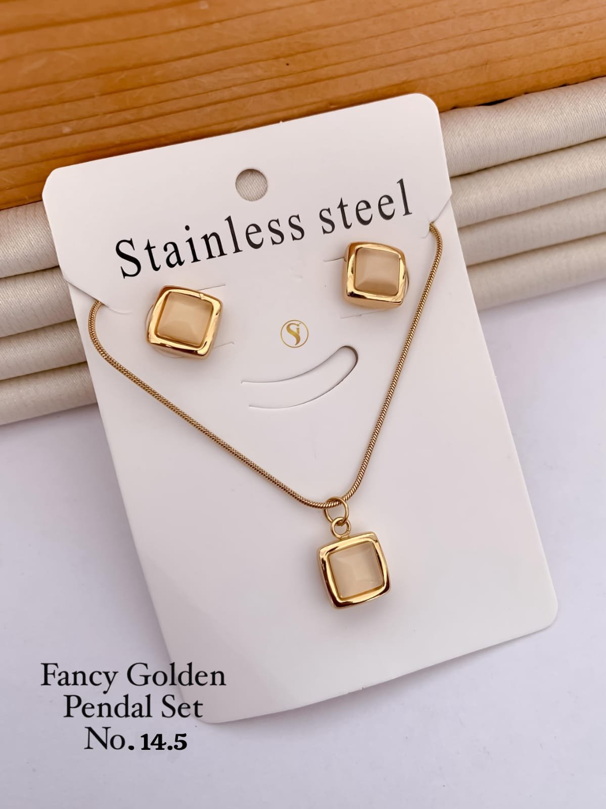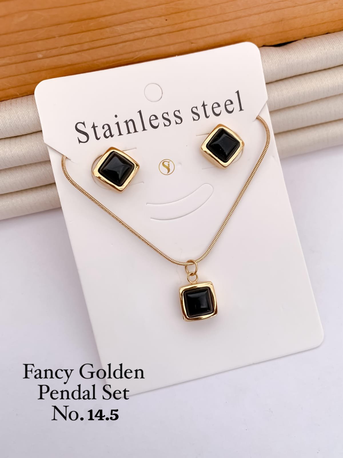 ✨ Upgrade your look with this classy gold-finish stainless steel pendant set, designed for daily elegance and long-lasting shine.