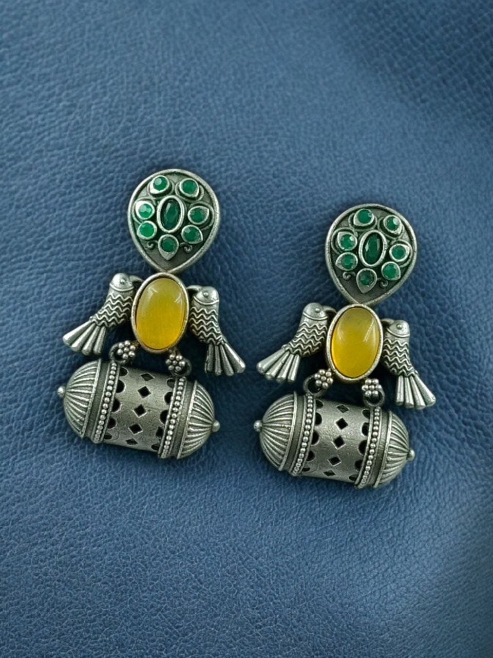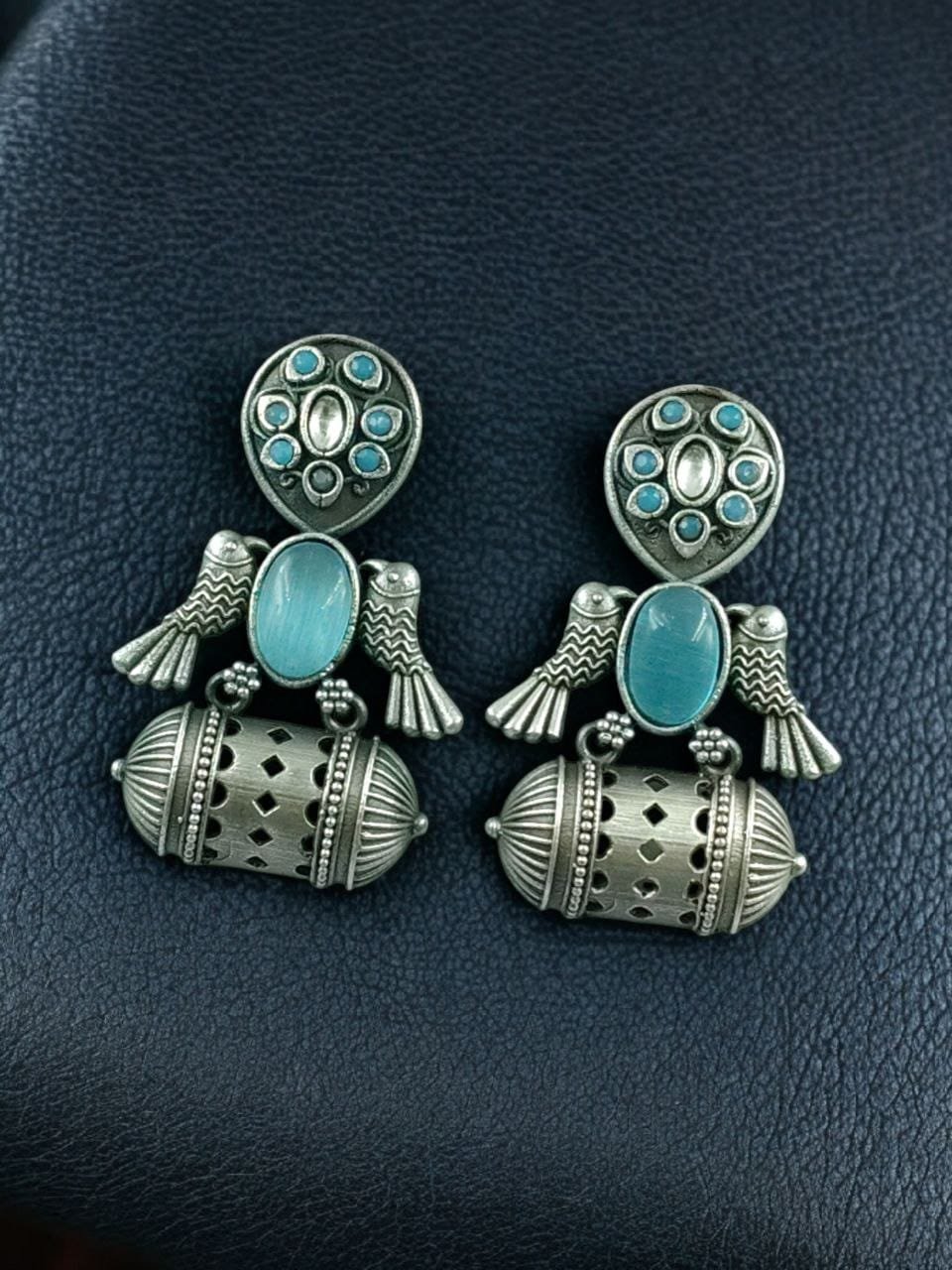 Handcrafted Antique Silver Bird Jhumkis | Best Traditional Dangler Earrings.