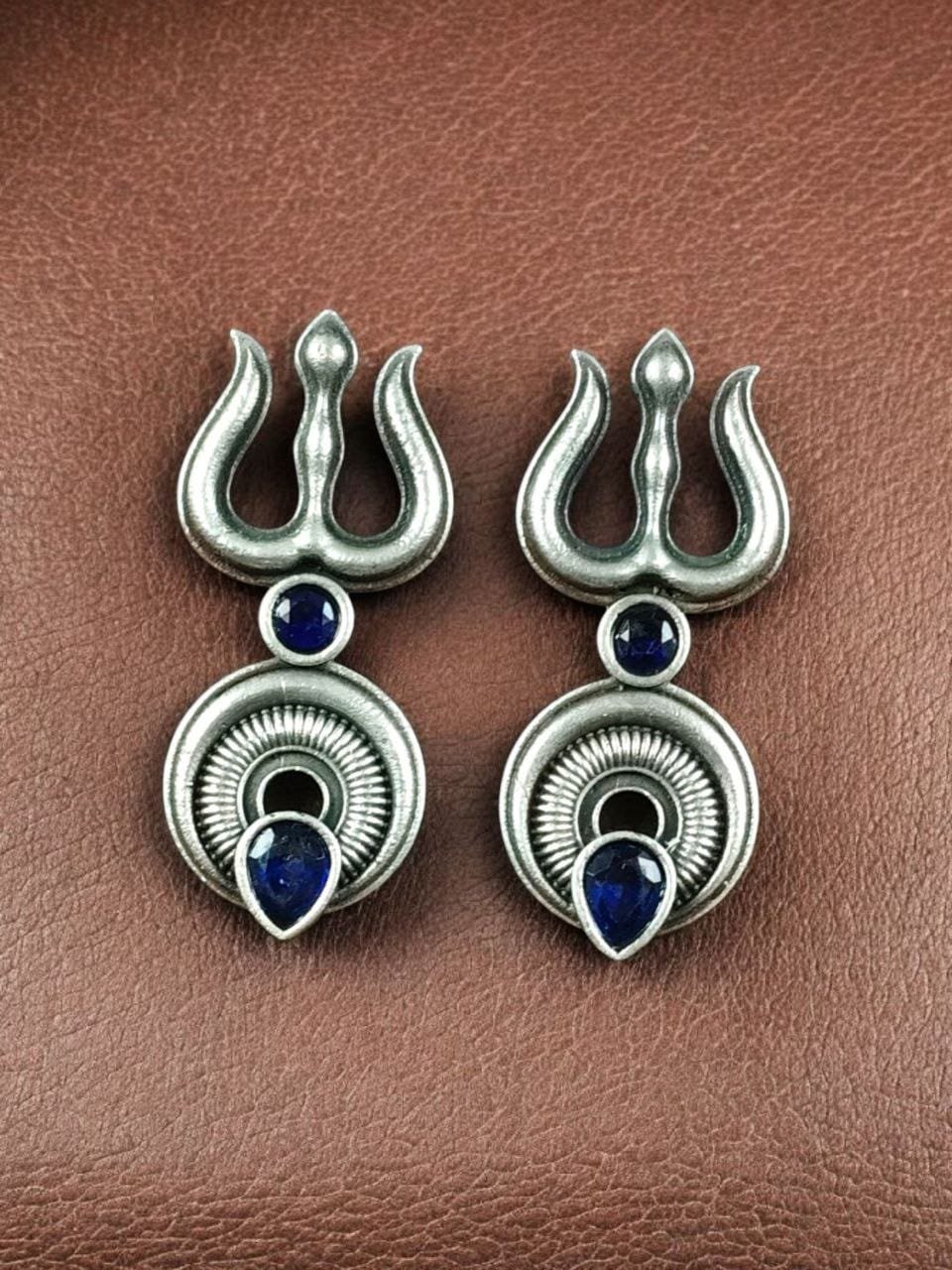 | Add spiritual elegance and timeless charm to your jewelry collection with these Handcrafted Trishul Stud Earrings, beautifully designed in a premium silver replica finish and embellished with elegant stone work. Perfect for girls and women who love meaningful accessories, these stud earrings blend traditional symbolism with modern style effortlessly. |