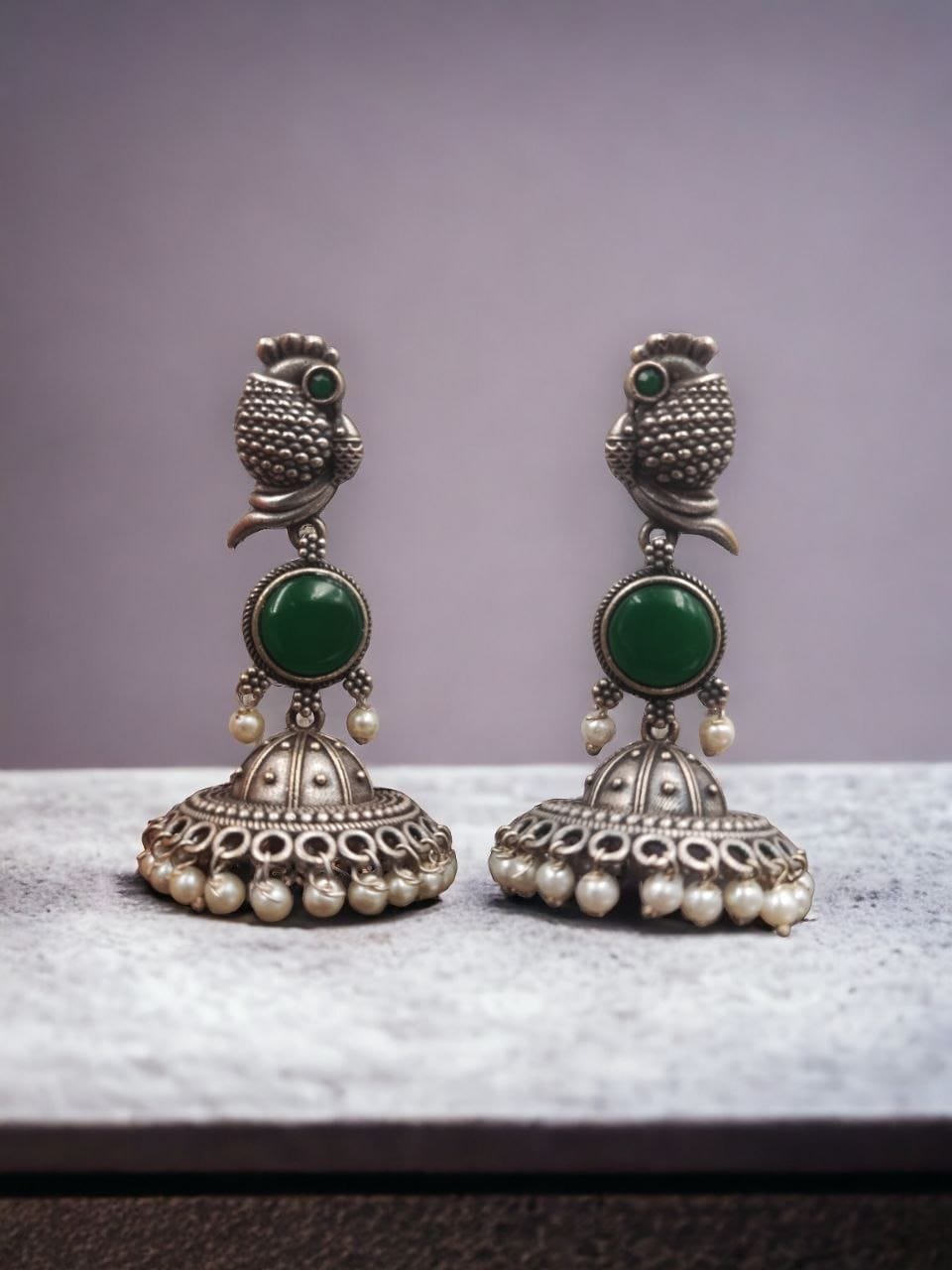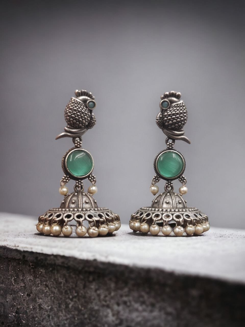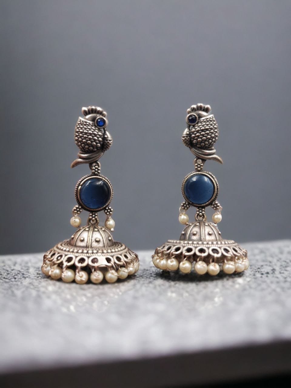 Oxidised Jhumka Earrings | Best Silver look Like Jhumki with Stone Work